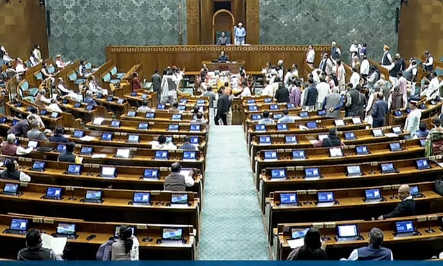 SIR குறித்து விவாதிக்க வேண்டும் என எதிர்க்கட்சிகள் தொடர் அமளியில் ஈடுபட்டதால் மக்களவை பிற்பகல் 12 மணி வரை ஒத்திவைக்கப்பட்டது.