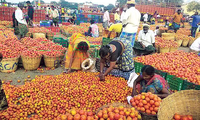ஆந்திர மாநிலம், கர்னூல் மாவட்டம், பட்டி கொண்டாவில் தக்காளி மொத்த விற்பனை சந்தை உள்ளது. விவசாயிகள் அப்பகுதியில் விளைவிக்கும் தக்காளிகளை சந்தைக்கு கொண்டு வந்து விற்பனை செய்வது வழக்கம்.