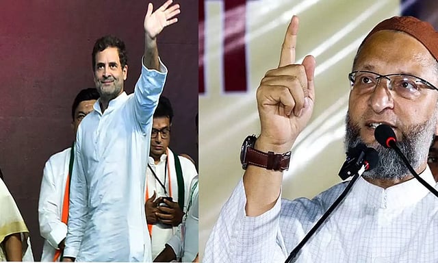 பிறரை குற்றம் சாட்டும் முன் ராகுல் காந்தி கண்ணாடியில் தன்னை பார்த்து கொள்ள வேண்டும். 2019ல் 540 பாராளுமன்ற இடங்களுக்கு போட்டியிட தலைமையேற்ற ராகுல் காந்தியால் அக்கட்சிக்கு 50 இடங்கள் மட்டுமே நாடு முழுவதும் கிடைத்தது. இது ஏன்? நீங்கள் (ராகுல்) பிரதமர் மோடியிடம் இருந்து எவ்வளவு தொகையை பெற்றீர்கள்? மைனாரிட்டி ஆதரவாளர்கள் என சொல்லி கொண்டு, பாபரி மஸ்ஜித் தகர்ப்பிற்கு காரணமான சிவசேனையுடன் காங்கிரஸ் மகாராஷ்டிரத்தில் கூட்டணி வைத்திருக்கிறது. மைனாரிட்டிகளுக்கும் ஏழைகளுக்கும் குரலாக ஏ.ஐ.எம்.ஐ.எம். வளர்ச்சி பெற்று வருவதால் எங்களை கண்டு காங்கிரஸ் அஞ்சுகிறது. காங்கிரஸ் தேர்தல் அறிக்கை, இங்க் தெளிக்கப்பட்ட வெறும் காகிதம்; அதில் ஒன்றுமில்லை. அந்த அறிக்கையில் குறிப்பிடப்பட்டிருக்கும் திருமண திட்டத்தின்படி இஸ்லாமியர் அல்லாதவர்களுக்கு பலன் கிடைக்குமே தவிர இஸ்லாமியர்களுக்கு பலன் எதுவும் இல்லை. எங்கள் ஆடைகளையும், தொப்பிகளையும் நோக்கி காங்கிரஸார் விரல் நீட்டும் போது அன்பு குறித்து அவர்கள் பேசுவதை எவ்வாறு ஏற்று கொள்ள முடியும்? தெலுங்கானாவில் அவர்கள் கட்சி தலைவர் ரேவந்த் ரெட்டி, ஆர்.எஸ்.எஸ். பின்னணியை கொண்டவர் என்பதை மறக்காதீர்கள்.