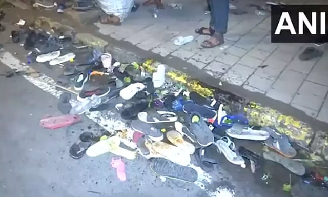 அலைகடலென ரசிகர்கள் குவிந்ததால் நரிமன் பாயிண்டில் ஆங்காங்கே காலணிகள் சிதறிக்கிடந்தன.