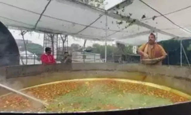 உத்தரப் பிரதேசம் மாநிலம் அயோத்தியில் ராமர் கோவில் பிரதிஷ்டை விழாவையொட்டி, மகாராஷ்டிர மாநிலம் கோரடியில் உள்ள ஸ்ரீ மஹாலக்ஷ்மி ஜகதம்பா மந்திரில் துணை முதல்வர் தேவேந்திர ஃபட்னாவிஸ் முன்னிலையில் உலகின் மிகப்பெரிய கடாயில் 6,000 கிலோ அல்வா தயாரிக்கும் பணி தொடங்கியது.