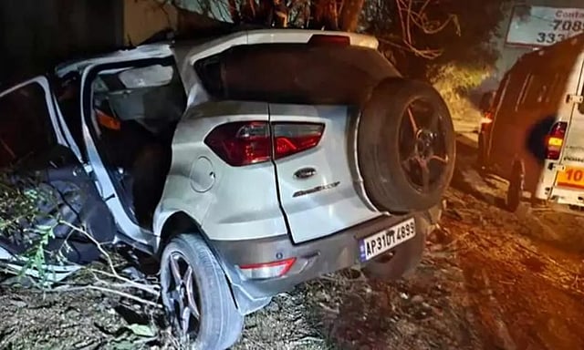 மிர்ஜ குடா என்ற இடத்தில் சென்ற போது திடீரென கார் கட்டுப்பாட்டை இழந்து சாலையோரம் இருந்த மரத்தில் பயங்கர வேகத்தில் மோதியது. இந்த விபத்தில் காரில் இருந்த சூர்ய தேஜா, சுமித், ஸ்ரீ நிகில், ரோகித் ஆகியோர் காரின் இடிபாடுகளில் சிக்கி சம்பவ இடத்திலேயே பரிதாபமாக இறந்தனர்.