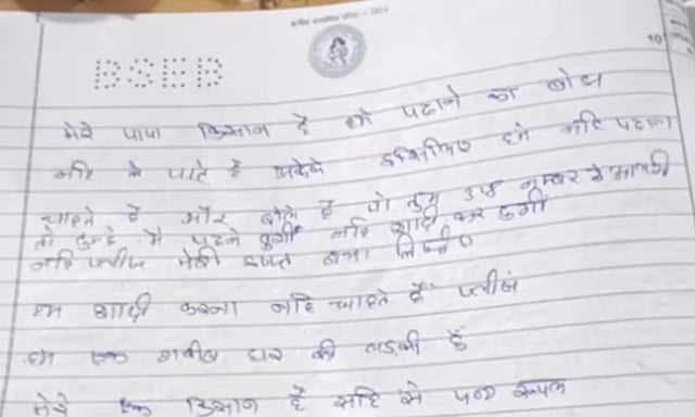 இதுதொடர்பாக, அந்த மாணவி தனது விடைத்தாளில், விவசாயியான எனது அப்பாவுக்கு வருமானம் குறைவு. எனவே நிதி நெருக்கடியால் படிப்பை கைவிடும்படி கூறிவருகிறார். தேர்வில் நல்ல மதிப்பெண் எடுக்கவேண்டும். இல்லாவிட்டால் திருமணம் செய்துவைப்பதாக கூறியுள்ளார். தயவுசெய்து எனக்கு நல்ல மதிப்பெண் தந்து எதிர்காலத்தை காப்பாற்ற உதவுங்கள் என தெரிவித்துள்ளார்.