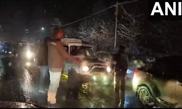#WATCH | Himachal Pradesh: Heavy snowfall causes a long traffic jam as nearly 1000 vehicles get stuck between Solang and Atal Tunnel, Rohtang. The police team is busy clearing the traffic jam amid snowfall. 700 tourists have been rescued safely. (23.12)