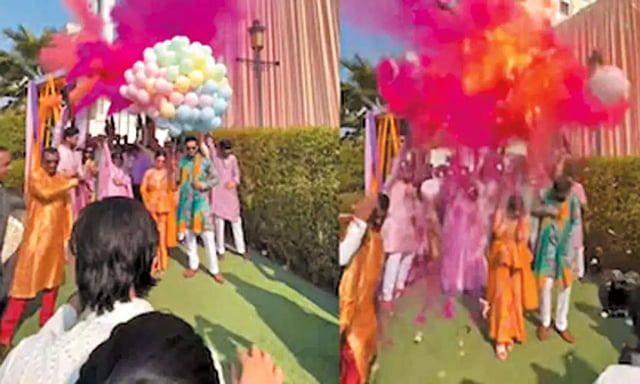 அந்தவகையில், திருமணத்துக்கு முந்தைய சடங்கில் மணமக்கள் ராட்சத பலூனை கையில் ஏந்திக் கொண்டு நடந்து சென்றனர். பின்னர் விளையாட்டு துப்பாக்கியால் நண்பர்கள் அதனை சுட்டனர். அப்போது அந்த பலூன்கள் பயங்கர சத்தத்துடன் வெடித்து தீப்பிடித்தது. இதில் மணமக்கள் காயம் அடைந்தனர். இதனால் மகிழ்ச்சி நிறைந்த திருமண கொண்டாட்டம் சோகத்துடன் முடிந்தது. இதுதொடர்பான வீடியோ சமூகவலைதளங்களில் வைரலாகி வருகிறது.