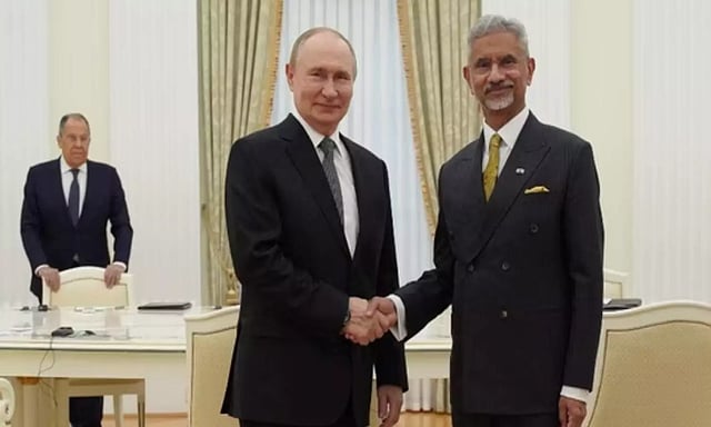 இந்நிலையில், ரஷிய அதிபர் புதினை இந்திய வெளியுறவு அமைச்சர் ஜெய்சங்கர் சந்தித்து பேசியுள்ளார்.