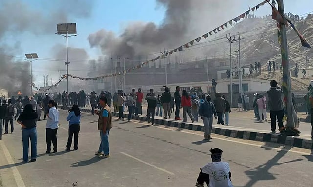 இதற்கிடையே, லடாக்கில் முழு அடைப்பு போராட்டத்துக்கு அழைப்பு விடுக்கப்பட்டது. நேற்று காலை முழு அடைப்பு போராட்டம் நடந்தது. அப்போது போராட்டக்காரர்களுக்கும், போலீசாருக்கும் இடையே தள்ளுமுள்ளு ஏற்பட்டது. இதனால் ஆத்திரமடைந்த போராட்டக்காரர்கள் வன்முறையில் ஈடுபட்டனர். போலீசாரின் வாகனங்களுக்கு தீவைத்தனர்.