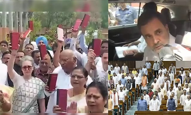 இந்நிலையில் முன்னதாக கையில் இந்திய அரசியலமைப்பு சட்டப்புத்தகத்தைக் கையில் ஏந்தியபடி ராகுல் காந்தி, சோனியா காந்தி, அகிலேஷ் யாதவ் உள்ளிட்ட இந்தியா கூட்டணி தலைவர்களும் திரிணாமுல் காங்கிரஸ் எம்.பிக்களும் அணிவகுத்தபடி பாராளுமன்றத்துக்குள் சென்றனர் அரசியலமைப்பு சட்டத்தை ஆளும் கட்சி இஷ்டத்துக்கு மாற்றி அமைக்க முடியாது என்பதை சூசகமாக உணர்த்தும் வகையில் இந்த அணிவகுப்பு நடந்தது.