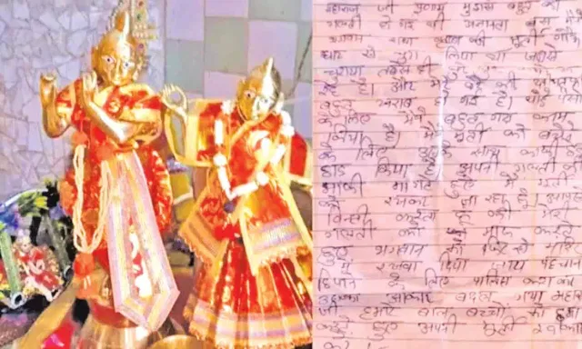 அந்த மூட்டைக்குள் கோவிலில் திருடப்பட்ட ராதை-கிருஷ்ணரின் அஷ்ட தாது சிலைகள் இருப்பதைக் கண்டு வியப்படைந்தனர். மேலும் அந்த மூட்டையில் இந்தியில் எழுதப்பட்ட ஒரு கடிதமும் இருந்தது. அந்த கடிதத்தில் எழுதப்பட்ட வாசங்களை அங்கிருந்தவர்கள் வாசித்தபோது மேலும் அதிர்ச்சி அடைந்தனர். கோவில் நிர்வாகிக்கு எழுதப்பட்டிருந்த அந்த கடிதத்தில், "நான் பாவம் செய்து விட்டேன். எனது அறியாமையால் கிருஷ்ணர், ராதை சிலைகளை திருடினேன். சிலை திருடிய நாளில் தொடங்கி கெட்ட கெட்ட கனவுகளால் அவதிப்பட்டு வருகிறேன்.