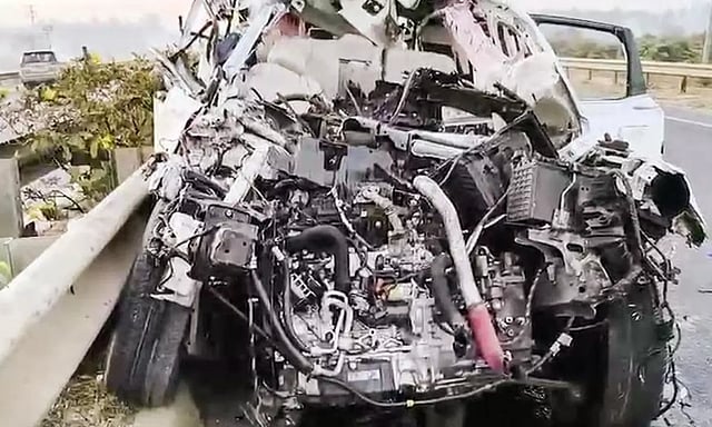 பைக் மீது மோதிய வேகத்தில், கார் முன்னால் சென்று கொண்டிருந்த லாரியின் பின்புறத்தில் மோதியது. சாலையோர தடுப்புச் சுவரில் மோதிய கார், சுமார் 150 மீட்டர் தூரத்திற்குத் தேய்த்துக் கொண்டே சென்று நின்றது. இதில் கார் அடையாளம் காண முடியாத அளவிற்கு உருக்குலைந்தது.