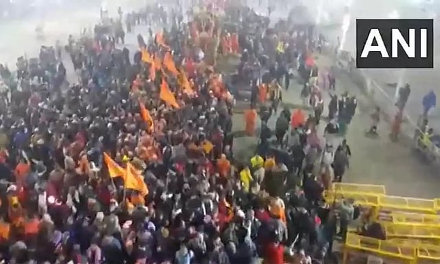 சாதுக்களையும், துறவிகளையும் தொடர்ந்து லட்சக்கணக்கானோர் கங்கை நதியை நோக்கி ஜெய் கங்கா மாதா என்று கோஷமிட்டபடியே நடந்து சென்றனர்.
