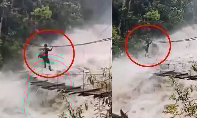 இந்நிலையில், அருணாச்சலப் பிரதேசத்தில் அஞ்சாவ் மாவட்டத்தில் உள்ள காட்டாற்றுக்கு குறுக்கே அமைக்கப்பட்டுள்ள தொங்கு பாலத்தை ஆபத்தான முறையில் ஒருவர் கடக்கும் வீடியோ இணையத்தில் வெளியாகி அதிர்ச்சியை ஏற்படுத்தியது.