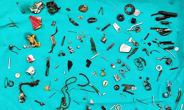 ஸ்கேன் செய்யப்பட்டதில் அவரது வயிற்றில் பல உலோக பொருட்கள் இருப்பது தெரிந்தது. அவற்றை நீக்க உடனடியாக ஒரு அறுவை சிகிச்சைக்கு ஏற்பாடு செய்தனர்.