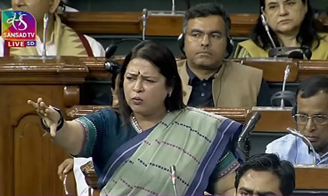 கலாச்சாரத்துறை இணை மந்திரி மீனாட்சி லேகி பேசிக் கொண்டிருக்கும்போது, ஆம் ஆத்மி கட்சியினர் கூச்சலிட்டனர்.