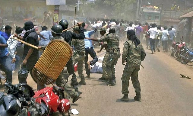 அப்போது, ஒரு கும்பல் திடீரென போலீசார் மீதும், போலீஸ் வாகனம் மீதும் கல்வீசி தாக்குதல் நடத்தினர். இந்த தாக்குதலில் 6 போலீசார் காயம் அடைந்தனர். இதனைத் தொடர்ந்து கூடுதல் படை வரவழைக்கப்பட்டு, நிர்வாகியை கைது செய்து அழைத்துச் சென்றுள்ளனர். இதனால் அப்பகுதியில் பரபரப்பு ஏற்பட்டுள்ளது.
