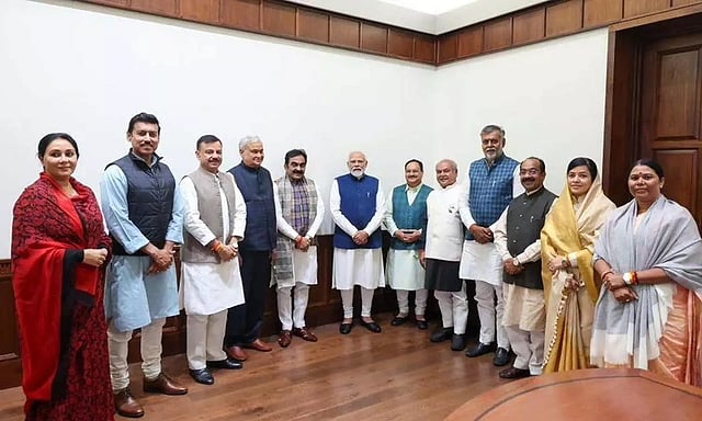 அப்போது பா.ஜனதா தேசிய தலைவரும், மாநிலங்களவை உறுப்பினருமான ஜே.பி.நட்டா உடன் இருந்தார். முன்னதாக அவர்கள் பிரதமர் மோடியை சந்தித்து ஆசி பெற்றனர். இதற்கிடையே, மாநிலங்களவை எம்.பி. கிரோடி லால் மீனாவின் ராஜினாமாவை உடனடியாக ஏற்றுக்கொண்டதாக மாநிலங்களவையில் அதன் தலைவர் ஜெகதீப் தன்கர் அறிவித்தார்.