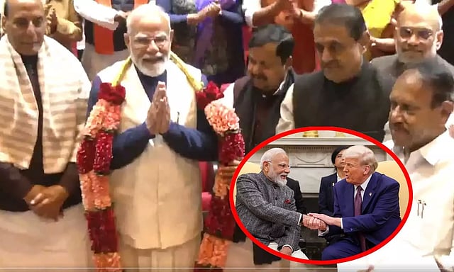 #WATCH | Delhi | NDA MPs felicitate PM Modi for the India-US trade agreement, at NDA Parliamentary party meeting in Parliament premises pic.twitter.com/M5nMRwggtn