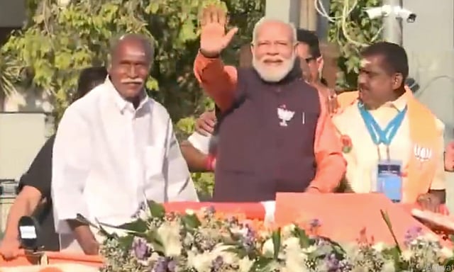 இந்த ரோடு ஷோவில் தேசிய ஜனநாயக கூட்டணி வேட்பாளர்களுக்கு பிரதமர் மோடி திறந்த வேனில் நின்றபடி பொதுமக்களிடம் ஆதரவு திரட்டினார்.