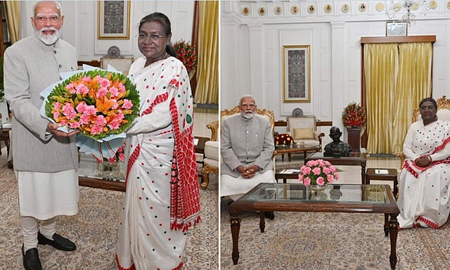 இந்நிலையில், டெல்லி ராஷ்டிரபதி பவனில் ஜனாதிபதி திரவுபதி முர்முவை பிரதமர் மோடி நேற்று மரியாதை நிமித்தமாகச் சந்தித்துப் பேசினார்.