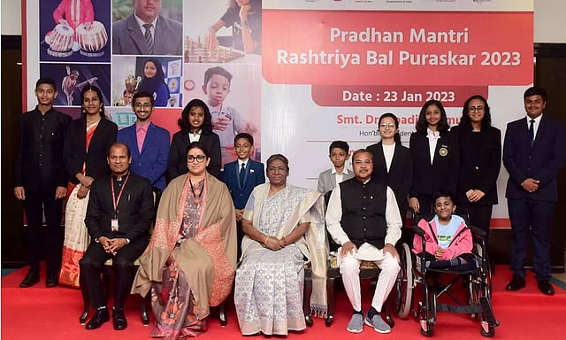 இந்நிலையில், ஜனாதிபதி மாளிகையில் நேற்று நடந்த நிக்ழ்ச்சியில் பல்வேறு துறைகளில் வியத்தகு சாதனை படைத்த 11 குழந்தைகளுக்கு ஜனாதிபதி திரவுபதி முர்மு விருதுகளை வழங்கினார்.