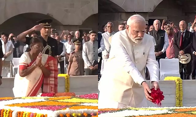 இந்த நிலையில் டெல்லி ராஜ்காட்டில் உள்ள மகாத்மா காந்தி நினைவிடத்தில் ஜனாதிபதி திரவுபதி முர்மு மலர் தூவி மரியாதை செலுத்தினார்.
