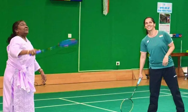 ராஷ்டிரபதி பவனில் உள்ள பேட்மிண்டன் மைதானத்தில் பிரபல பேட்மிண்டன் வீராங்கனை சாய்னா நேவால் உடன் ஜனாதிபதி திரவுபதி முர்மு பேட்மிண்டன் விளையாடியுள்ளார்.
