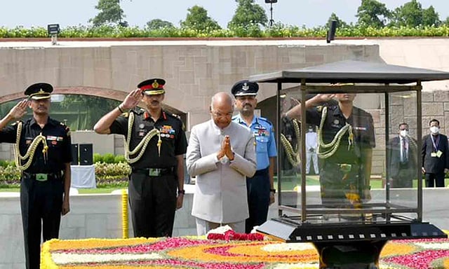 ஜனாதிபதி ராம்நாத் கோவிந்தின் பதவிக் காலம் இன்றுடன் முடிவடைகிறது. இந்த நிலையில் டெல்லி ராஜ்காட்டில் உள்ள மகாத்மா காந்தி நினைவிடத்தில் இன்று ராம்நாத் கோவிந்த் மலர் தூவி மரியாதை செலுத்தினார். அவர் இன்று இரவு 7 மணிக்கு நாட்டு மக்களுக்கு உரையாற்றுகிறார்.
