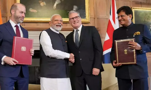 இதற்கிடையே, இந்தியா-இங்கிலாந்து இடையேயான சுதந்திர வர்த்தக ஒப்பந்தத்தில் இரு நாட்டு பிரதமர்களும் கையெழுத்திட்டனர்.