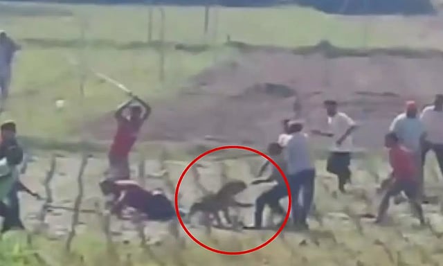 அப்போது கிராம வாசிகள் சிறுத்தையைச் சுற்றி வளைத்து குச்சிகள் மற்றும் பிற ஆயுதங்களால் தாக்கினர்.