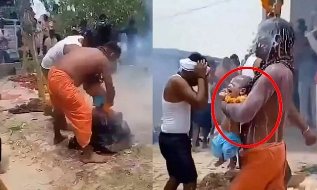 வட மாநிலத்தில் நடத்தப்படும் காசிதாஸ் பாபா பூஜை என்ற வேண்டுதல் நிகழ்வில் பச்சிளம் குழந்தையை கொதிக்கும் பால் பானைக்குள் பக்தர் ஒருவர் போடும் வீடியோ சமூக வலைதளங்களில் பரவி அதிர்ச்சியை ஏற்படுத்தியுள்ளது.