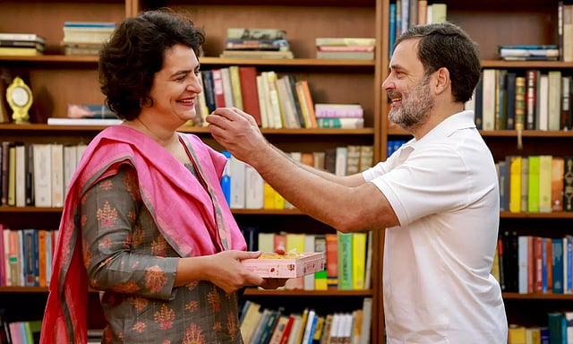 இதனை, சகோதரர் ராகுல் காந்தியிடம் வழங்கி, பிரியங்கா காந்தி வாழ்த்து பெற்றார். மேலும், வெற்றி பெற்ற தங்கை பிரியங்கா காந்திக்கு இனிப்பு ஊட்டி ராகுல் காந்தி வாழ்த்து தெரிவித்தார்.