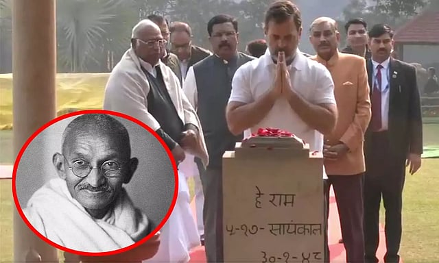 இந்நிலையில் எதிர்க்கட்சி தலைவர் ராகுல் காந்தி, காங்கிரஸ் தலைவர் மல்லிகார்ஜுன கார்கே ஆகியோர் டெல்லியில் உள்ள மகாத்மா காந்தி நினைவிடத்திற்கு சென்று மரியாதை செலுத்தினர்.