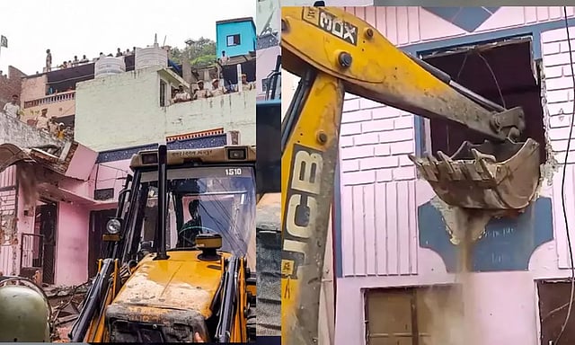 VIDEO | Rajasthan: #Udaipur district administration demolishes house of a boy accused of stabbing his classmate.A mob set fire to cars and pelted stones amid communal tension in Udaipur after a class 10 student stabbed another boy at a government school on Friday.#udaipurnews… pic.twitter.com/h5U6EOywg2