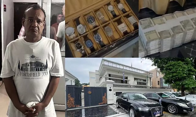இவரிடமிருந்து போலி தூதரக நம்பர் பிளேட் கொண்ட கார்கள், போலி ஆவணங்கள், ஆடம்பர கடிகாரங்கள் ஆகியவை பறிமுதல் செய்யப்பட்டன.