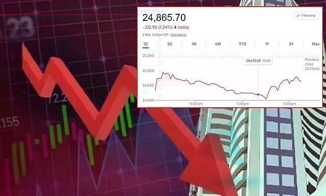 வெள்ளிக்கிழமை வர்த்தக முடிவில் இந்திய பங்குச் சந்தை குறியீடு நிஃப்டி 25178.65 ஆக இருந்தது. இன்று காலை 519.40 புள்ளிகள் சரிந்து 24659.25 புள்ளிகளுடன் வர்த்தகம் தொடங்கியது. இன்று அதிகபட்சமாக 24989.35 புள்ளிகளிலும், குறைந்தபட்சமாக 24603.50 புள்ளிகளிலும் வர்த்தகமானது. இறுதியாக 24865.70 புள்ளிகளில் வர்த்தகம் நிறைவடைந்தது. இன்றைய வர்த்தகத்தில் நிஃப்டி 312.95 புள்ளிகள் சரிந்தது.