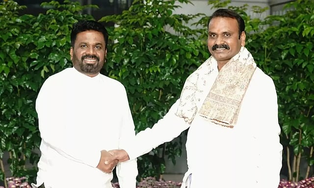 அனுர குமார திசநாயக்கை மத்திய இணை அமைச்சர் எல்.முருகன் வரவேற்றார்.