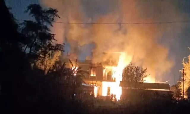 இந்நிலையில் நேற்று கும்பல் ஒன்று பவம் தௌபல் மாவட்டத்தில் உள்ள அவரது வீட்டுக்கு தீவைத்துள்ளது.