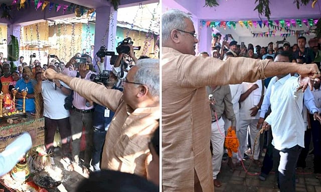இந்த வழிபாட்டின்போது சத்தீஸ்கர் முதல்வர் பூபேஷ் பாகல் மணிக்கட்டில் சாட்டையால் பலமுறை சவுக்கடி வாங்கினார்.