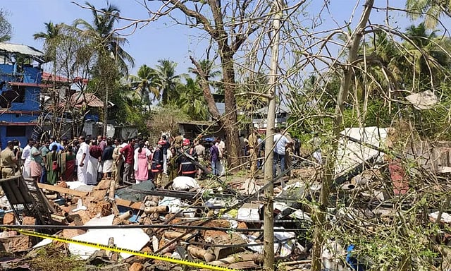 கேரள மாநிலம் எர்ணாகுளம் மாவட்டம் திருப்போனித்துரா அருகே உள்ள புதியகாவு கோவிலில் திருவிழா நடந்து வருகிறது. இதையொட்டி வாணவேடிக்கை நிகழ்ச்சி நடத்துவதற்காக பாலக்காட்டில் இருந்து சரக்கு வாகனத்தில் பட்டாசுகள் கொண்டுவரப்பட்டன.