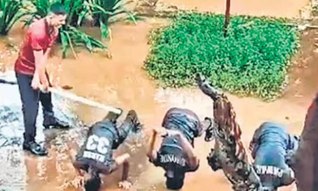 அப்போது அணிவகுப்பு பயிற்சியில் சில மாணவர்கள் சரியாக செயல்படவில்லை என கூறப்படுகிறது. இதை அந்த கல்லூரியின் என்.சி.சி. சீனியர் மாணவர் ஒருவர் பார்த்துள்ளார். உடனே அவர் பயிற்சியில் சரியாக செயல்படாத மாணவர்களை தனியாக அழைத்து சென்று தரையில் குப்புற படுக்க வைத்துள்ளார்.