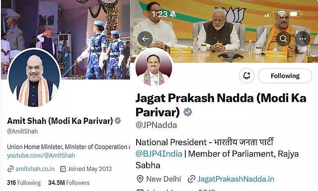 உள்துறை அமைச்சர் அமித்ஷா மற்றும் பாஜகவின் தேசிய தலைவர் ஜேபி நட்டா ஆகியோர் தங்களது X கணக்கில், 'மோடியின் குடும்பம்' என்ற வாசகத்தை இணைத்துள்ளனர்.