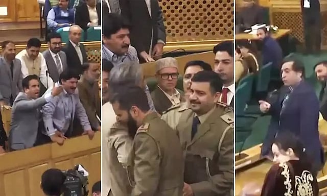 அமளிக்கு பிறகு உமர் அப்துல்லா பேசினார். அதைத் தொடர்ந்து கவர்னர் மனோஜ் சின்கா உரை ஆற்றினார்.