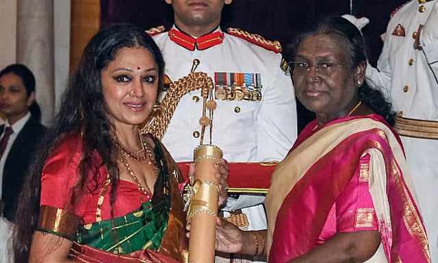 அந்த வகையில் இந்த நிகழ்வில் பிரபல நடிகை ஷோபனா பத்ம பூஷன் விருதைப் பெற்றார். தொழிலதிபர் நல்லி குப்புசாமிக்கும் பத்ம பூஷன் வழங்கப்பட்டது.