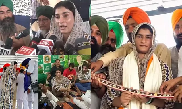 இந்நிலையில், பஞ்சாப் - அரியானாவின் ஷம்பு எல்லையில் குறைந்தபட்ச ஆதரவு விலைக்கு சட்டப்பூர்வ உத்தரவாதம் கோரி விவசாயிகள் நடத்தி வரும் போராட்டத்தில் வினேஷ் போகத் பங்கேற்றுள்ளார். விவசாயிகள் தங்களது போராட்டத்தைத் தொடங்கி இன்றுடன் 200 நாட்கள் நிறைவடைந்ததையொட்டி இன்று அங்கு ஏற்பாடு செய்யப்பட்ட நிகழ்ச்சியில் வினேஷ் போகத் கலந்து கொண்டார். அப்போது அவருக்கு விவசாயிகள் சார்பாக வாள் நினைவு பரிசாக வழங்கப்பட்டது. நிகழ்ச்சியில் பேசிய வினேஷ் போகத், உங்களின் மகள் இன்று உங்களோடு நிற்கிறாள் என்று தெரிவித்தார்.