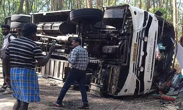 கேரளா மாநிலம் இடுக்கி மாவட்டம் மூணாறில் நகார்கோவிலில் இருந்து கல்லூரி மாணவர்களை ஏற்றிச் சென்ற பேருந்து கவிழந்து விபத்துக்குள்ளானது.