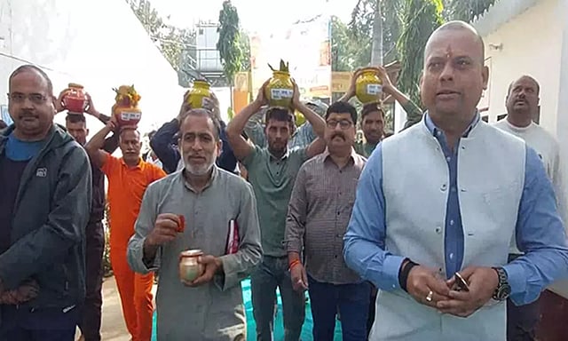 #WATCH | Ayodhya, UP: Water from Triveni Sangam brought to a jail in Ayodhya; inmates took 'Snan'Uday Pratap Mishra, Prison Superintendent, says, "All the inmates of the jail took 'Snan' with the water brought from the Maha Kumbh. There are 757 inmates in the jail, and all of… pic.twitter.com/gLnBPHMPGC