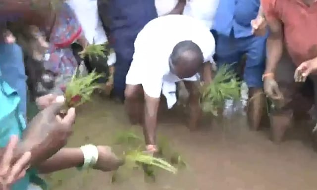 இந்நிலையில், கர்நாடக மாநிலத்தின் மாண்டியா மாவட்டம் பாண்டவபுராவின் சீதாபுரா கிராமத்தில் நிலம் ஒன்றில் மத்திய மந்திரி குமாரசாமி இன்று நாற்று நட்டார்.