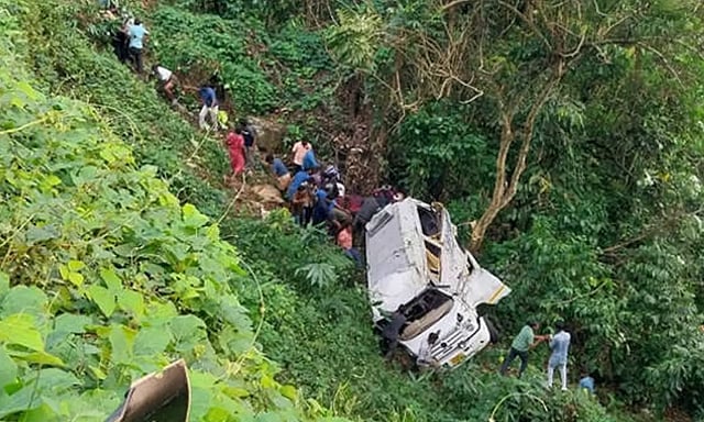 கேரள மாநிலம் இடுக்கி அருகே சுற்றுலா வேன் கவிழ்ந்து விபத்து ஏற்பட்டுள்ளது.