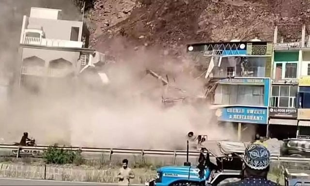 ஜம்மு காஷ்மீரின் உதம்பூர் மாவட்டத்தில் இன்று நிலச்சரிவு ஏற்பட்டுள்ளது. இதில் பல வணிகக் கட்டிடங்கள் சேதமடைந்தன