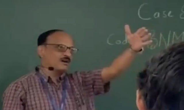 வகுப்பறையில் இருந்த மாணவர்கள் தங்களது செல்போனில் இதை வீடியோ எடுத்த நிலையில் சமூக வலைத்தளங்களில் வெளியாகி கடும் கண்டனத்துக்கு உள்ளாகி வருகிறது.